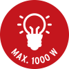 - Potenza massima 1.000W (con lampadina a incandescenza) o massimo 300W (con lampadina a risparmio energetico)