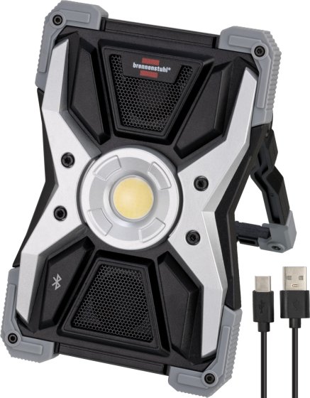 Faretto mobile a LED con accumulatore RUFUS 3010 MA con altoparlante Bluetooth (faretto da costruzione a LED con funzione powerbank, cavo di ricarica incluso, alloggiamento in alluminio pressofuso, 3000lm, IP65)