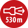 - Luce principale al 100%: 530m / al 33%: 280m / Flash: 250m.
